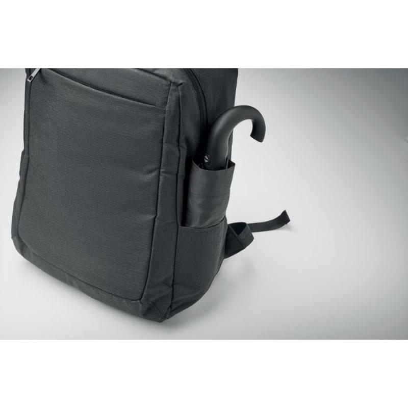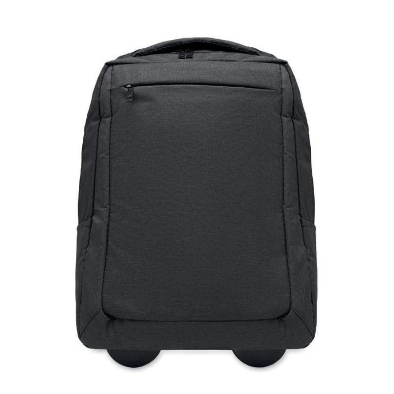 Mochila tipo carrito para portátil en poliéster RPET 600D. Incluye un compartimento interno para computadora portátil de 15''. Bolsillo delantero con cremallera. Dos bolsillos laterales. Tres bolsillos interiores. Espalda y tirantes acolchados. Estructura doble tubo.Recipiente :