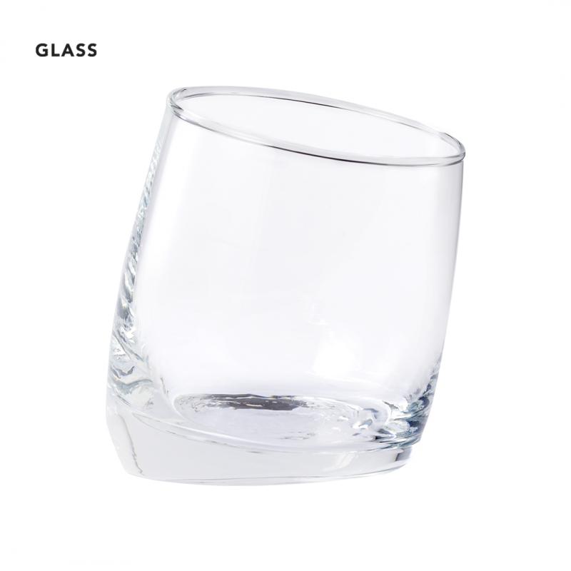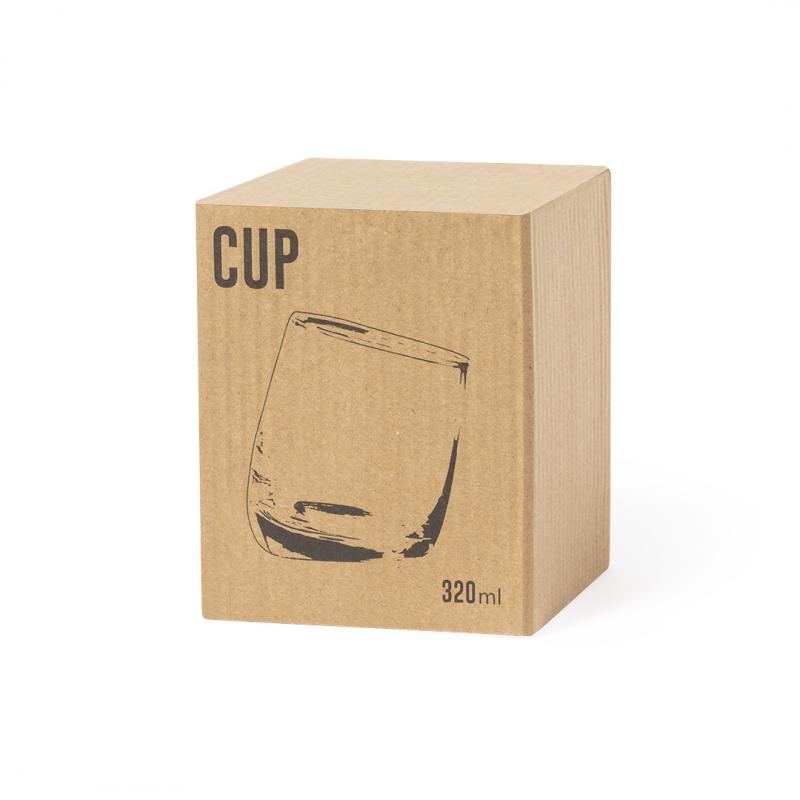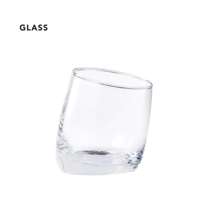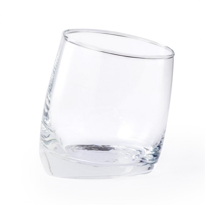 Original vaso de cristal de 320ml de capacidad. Con atractivo diseño inclinado y presentado en caja individual de diseño kraft.