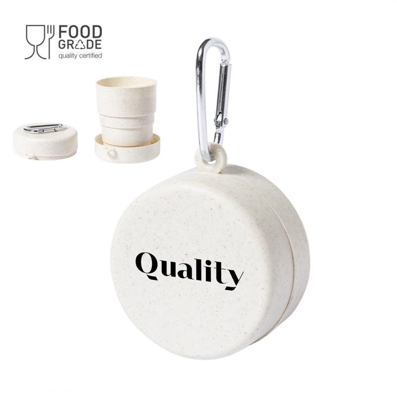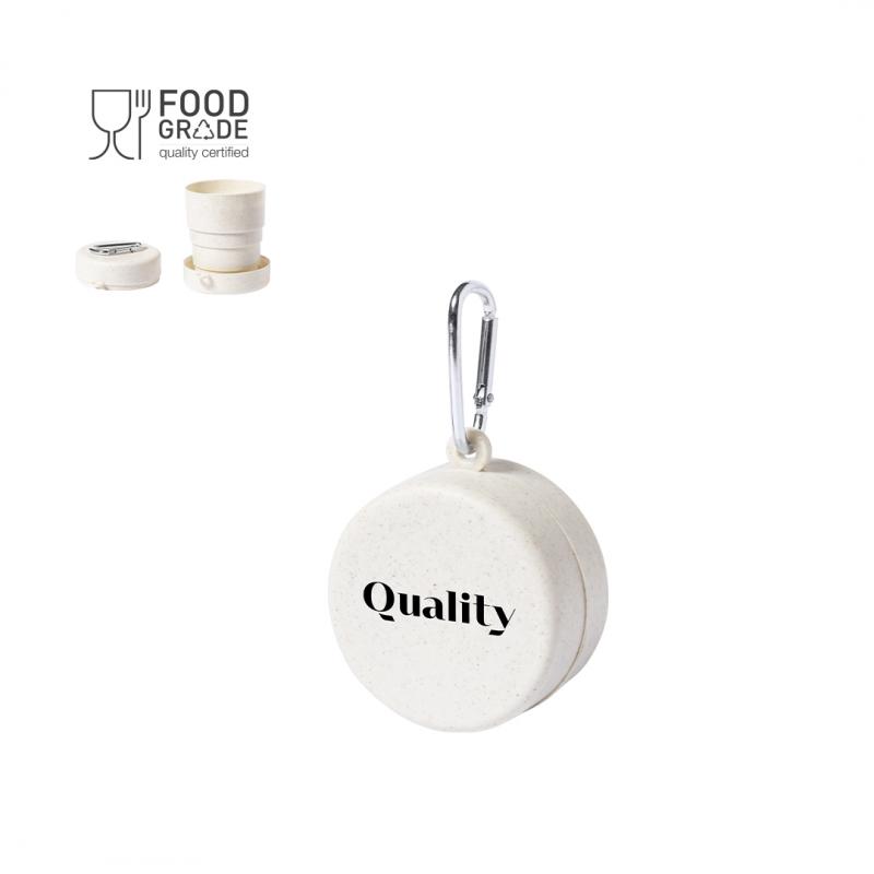 Original vaso plegable para emergencias fabricado en PP veteado libre de BPA. De 220ml de capacidad, con mosquetón metálico de transporte. Certificación Food Grade, garantizando la seguridad cuando los alimentos entran en contacto con el material usado para fabricar el producto.