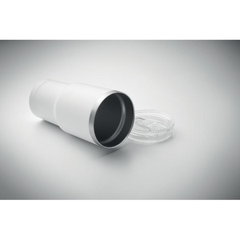 Vaso de acero inoxidable reciclado de doble pared (90 % acero inoxidable reciclado y 10 % acero inoxidable). Tapa con orificio deslizante para beber. Antifugas. Capacidad: 500 ml.Recipiente :