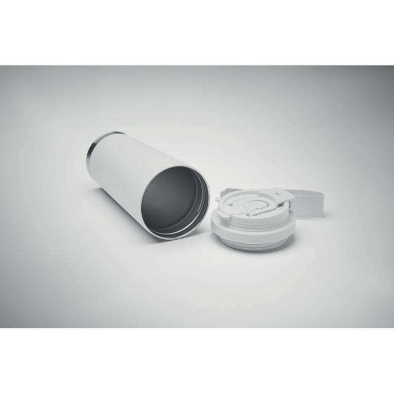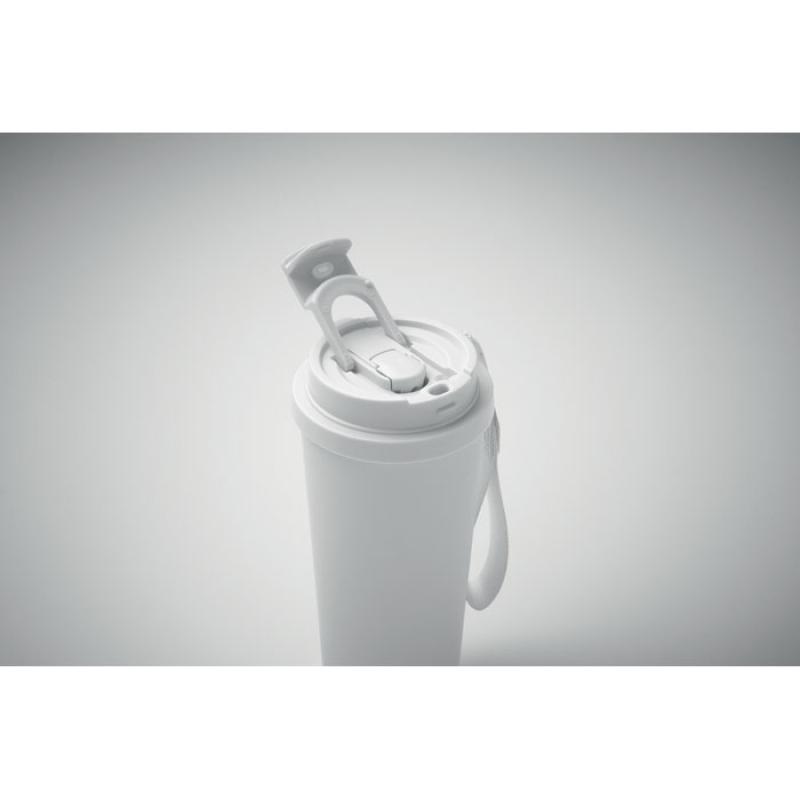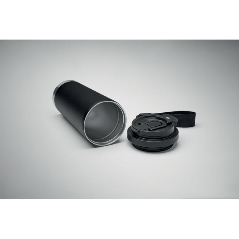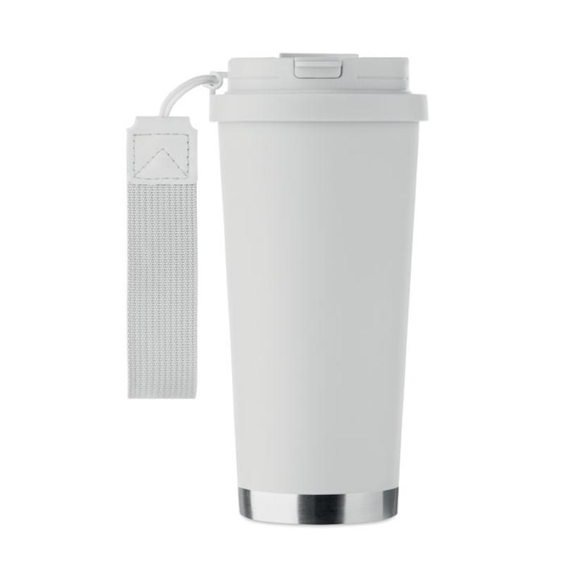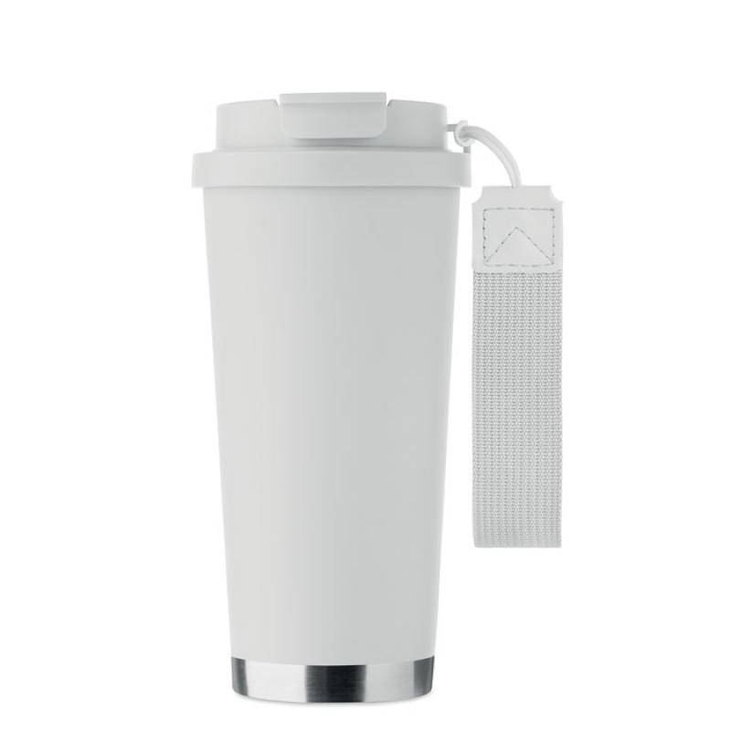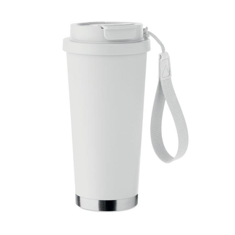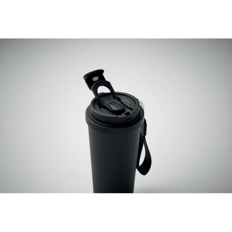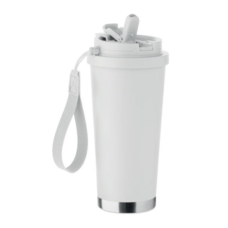 Vaso de acero inoxidable reciclado de doble pared con tapa de PP (tapa 2 en 1 para beber y pajita) y con correa de transporte de RPET. Anti fugas. Capacidad: 500 ml.Recipiente :