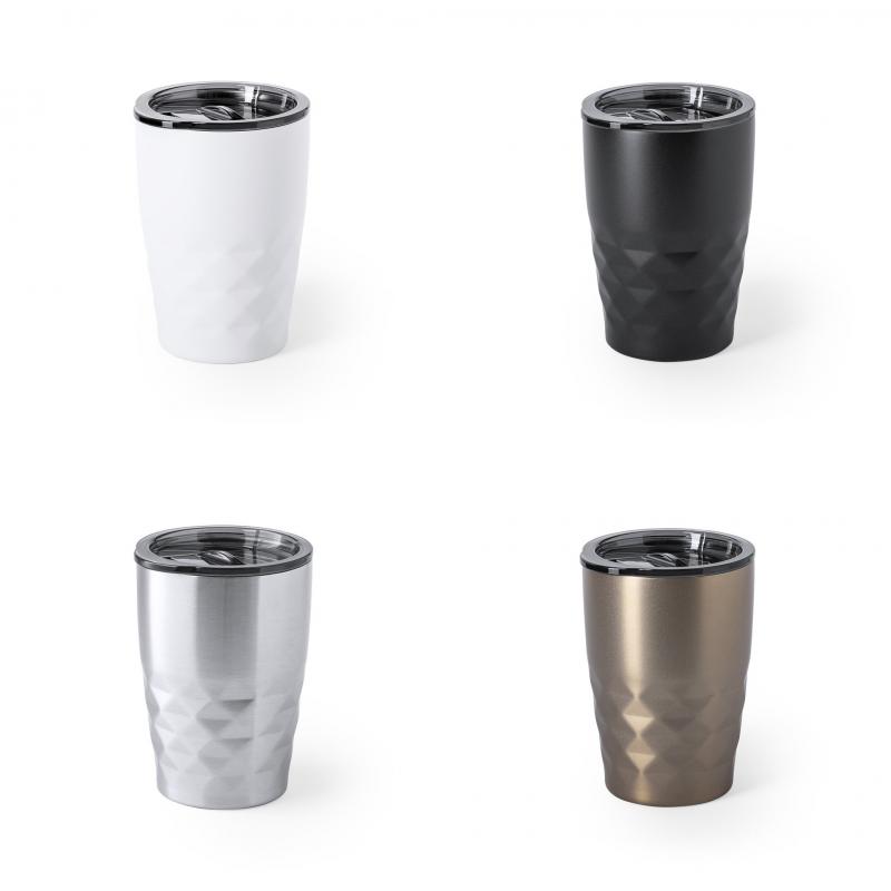 Vaso térmico de acero inoxidable, con doble capa y aislamiento de cobre al vacío. El mismo le permite mantener el calor y el frio durante un tiempo más prolongado, llegando a las 8 y 24 horas respectivamente. De 350ml de capacidad, y disponible en variada gama de colores metalizados. Presentado en atractiva caja de diseño.