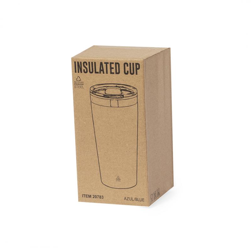 Vaso térmico de Acero Inox Reciclado, con doble pared y 600 ml de capacidad. Incluye tapa con dosificador y está disponible en variada gama de colores metalizados. Con logotipo Acero Inox Reciclado. Presentada en atractiva caja de diseño kraft.