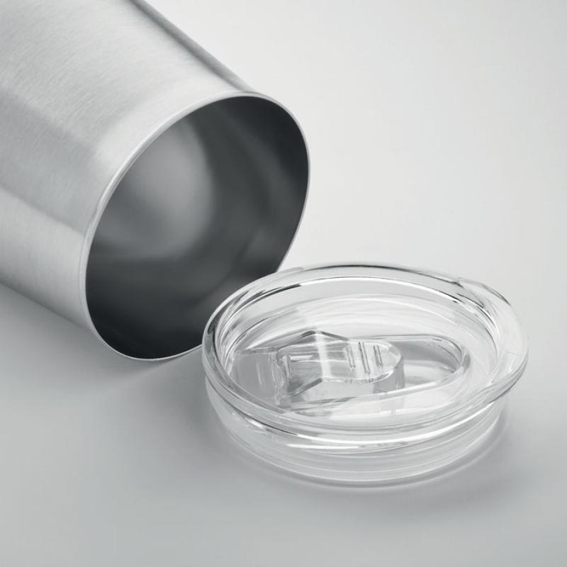 Vaso de acero inoxidable reciclado (90% de acero inoxidable reciclado y 10% de acero inoxidable) con revestimiento en polvo y tapa con orificio de cremallera deslizante. Capacidad: 500 ml.Recipiente :