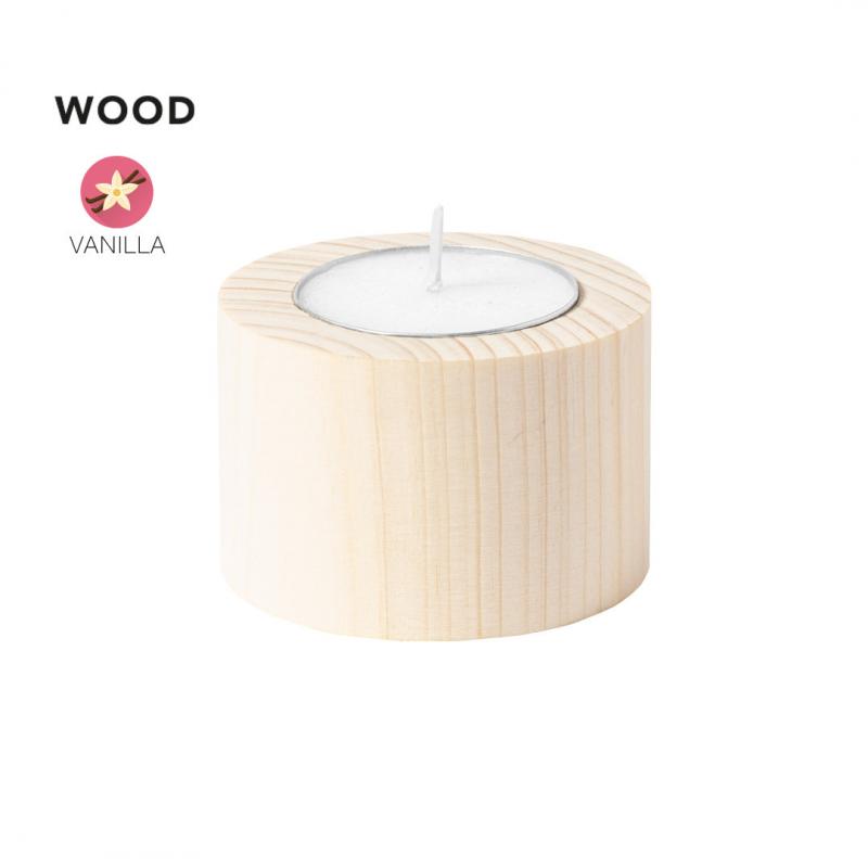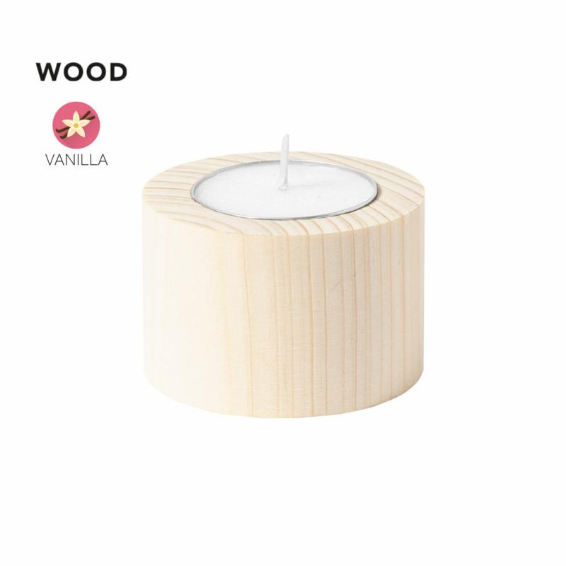 Original vela de línea nature con aroma vainilla. Base fabricada en madera natural, presentada en atractiva caja individual de diseño eco y acabado kraft.