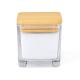 Vela aromática con perfume vainilla. Viene en tarro de cristal transparente, de forma cuadrada y con tapadera en bambú. Presentada en caja individual de diseño kraft. Materiales como el bambú fomentan la utilización de materias primas naturales, reduciendo las emisiones contaminantes. Proviene de una planta de gran resistencia y versatilidad, con crecimiento y regeneración rápidos, siendo una excelente alternativa al uso de madera tradicional.
