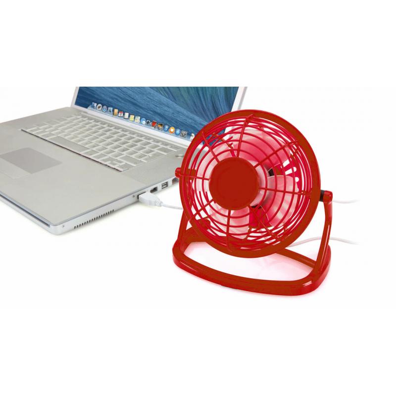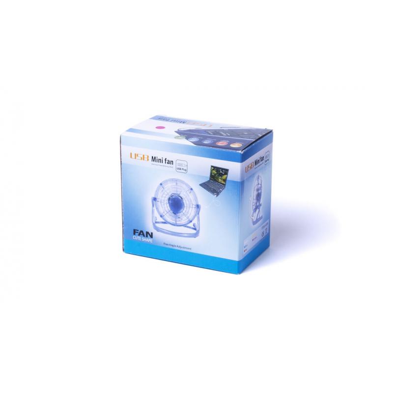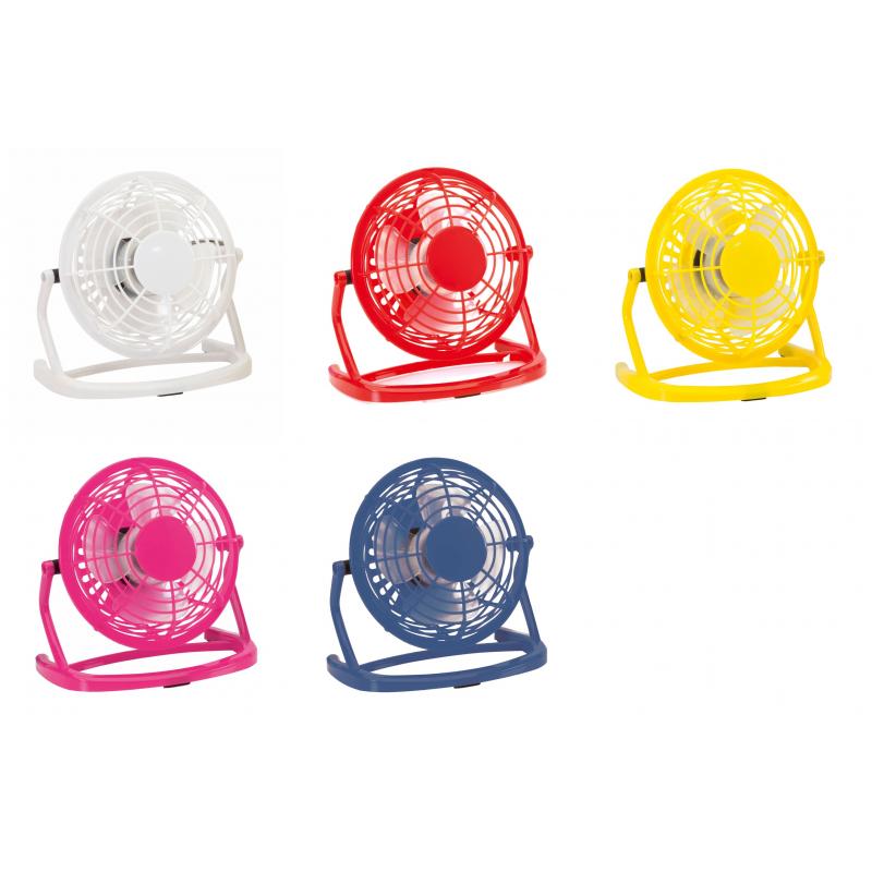 Atrevido mini ventilador de escritorio con conexión USB en divertidos colores. De compacto y resistente diseño, incorpora interruptor en la parte trasera, además de una generosa zona central para impresión en tampografía o gota de resina. Presentado en atractiva caja de diseño.