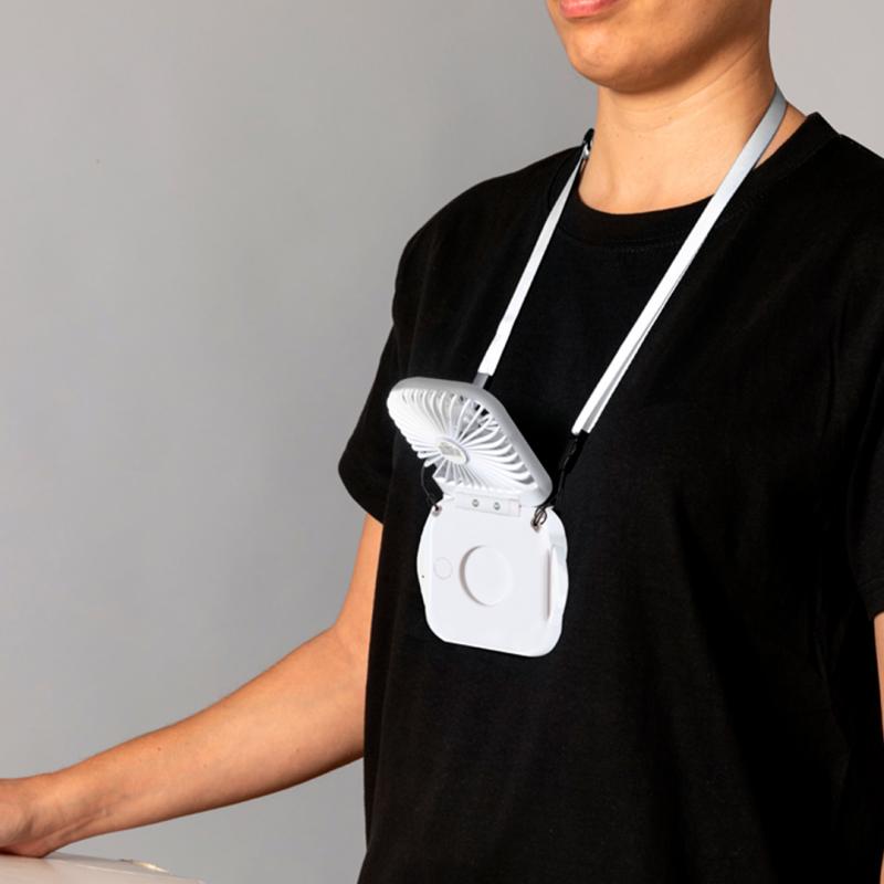 Ventilador portátil fabricado en resistente ABS. Este práctico dispositivo cuenta con tres velocidades, con un lanyard para un uso cómodo. Se alimenta mediante una batería de 400 mAh, compatible con conexiones USB , y presenta indicadores de luz para conocer el nivel de carga de la batería. Presentado individualmente en caja de diseño kraft.