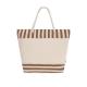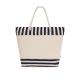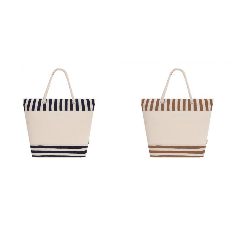 Bolsa térmica confeccionada en resistente material RPET con interior de aluminio, ideal para mantener la temperatura de alimentos y bebidas.Con un diseño a rayas naturales a juego con color. Incluye cierre de cremallera para mayor seguridad y asas largas de algodón en formato cuerda, reforzadas con resistentes argollas metálicas.