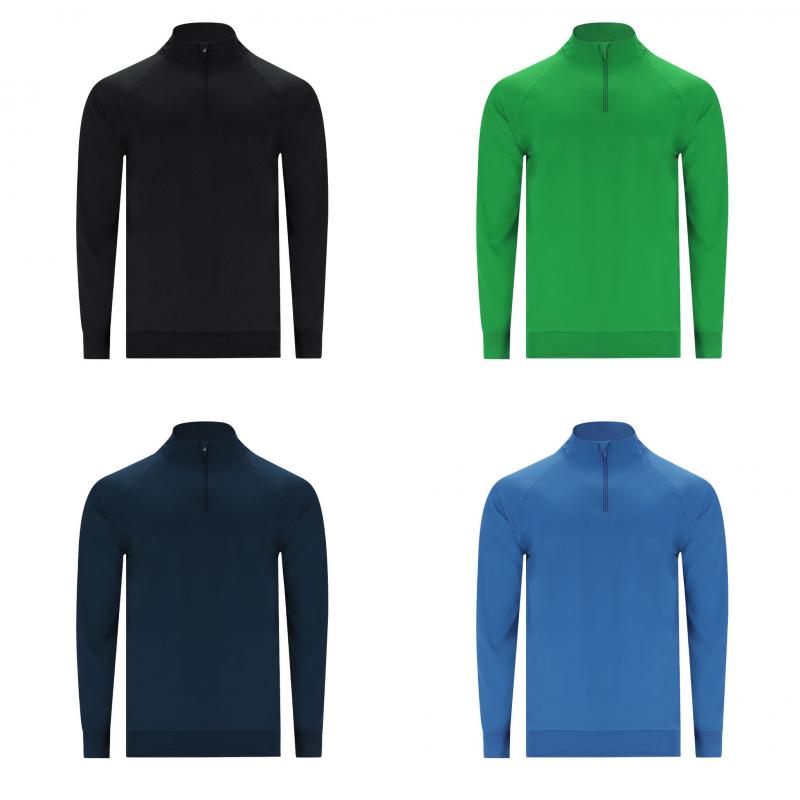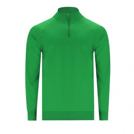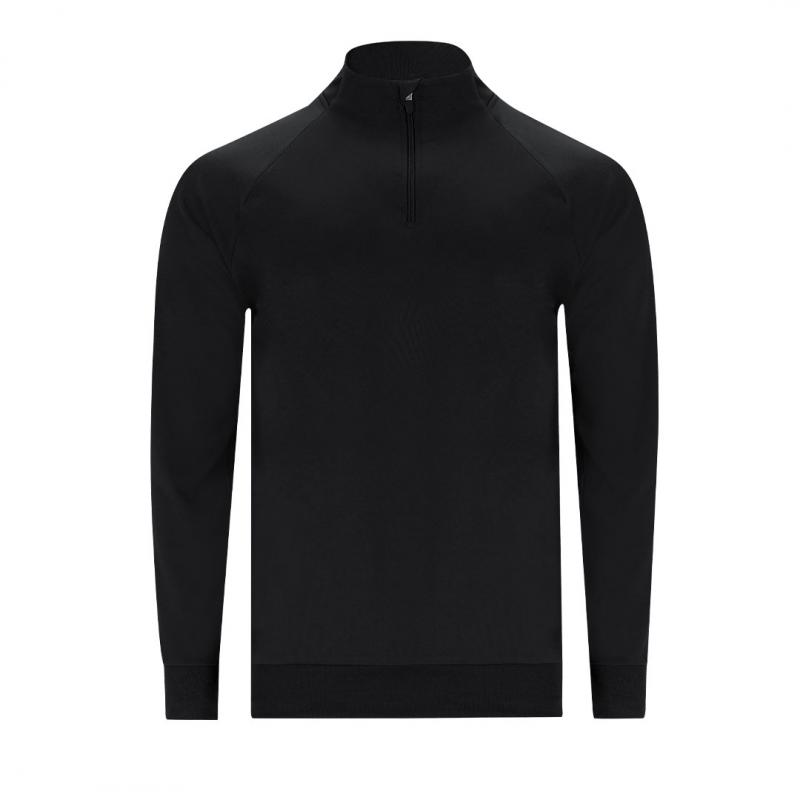 Sudadera técnica confeccionada con interior brushed perchado que aporta calidez y suavidad. Con manga ranglán y cuello con media cremallera y cubrecosturas de refuerzo a tono. Parte posterior del cuello, puños y bajo, confeccionados en canalé 1x1 para un ajuste cómodo. Incluye costuras laterales.