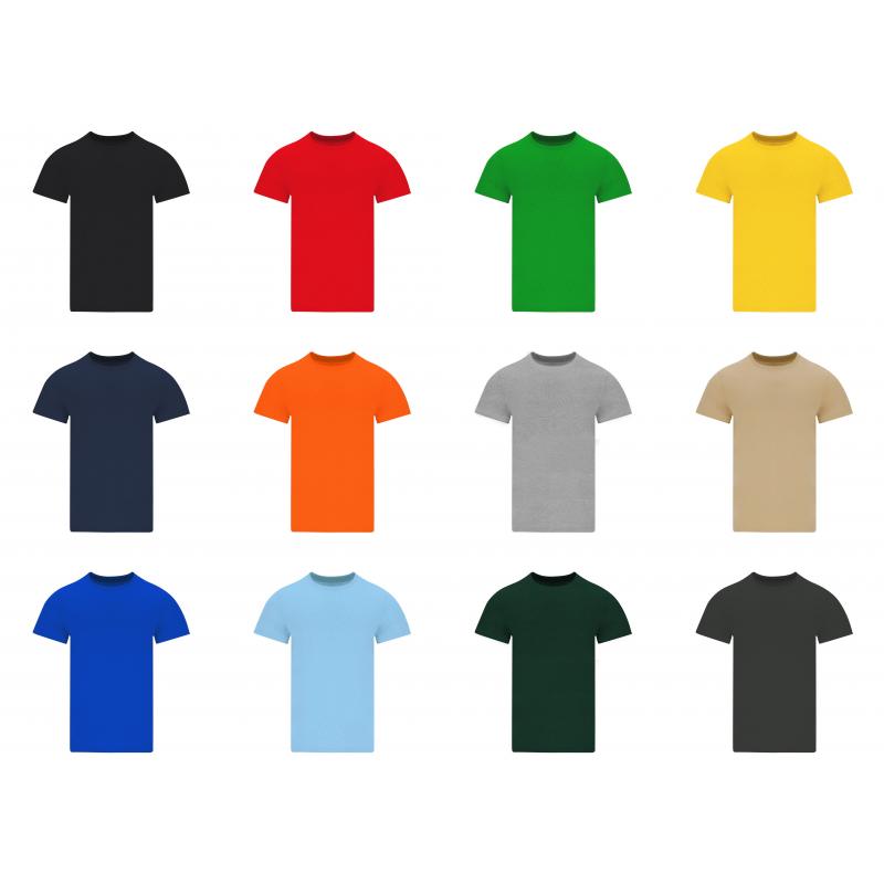Camiseta tubular de manga corta unisex confeccionada en algodón de punto liso de 190 g/m2. Con cuello redondo en canalé 1x1 con elastano y cubrecosturas.