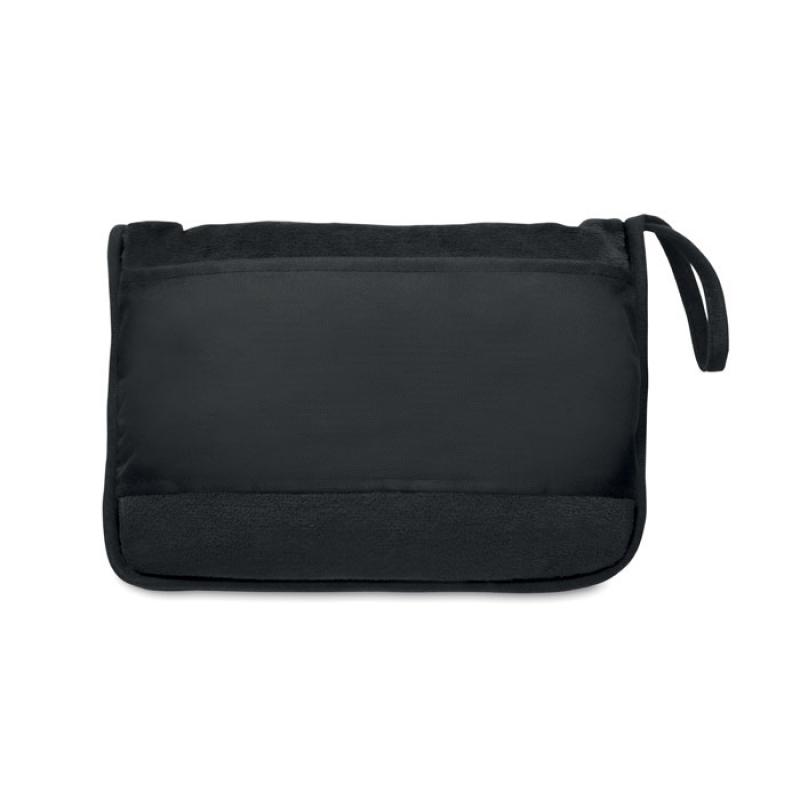 Set 2 en 1 de manta y/o almohada de viaje de franela de 220 gr/m². El artículo se puede plegar. Incluye asa y tira para trolley RPET 600D.Recipiente :
