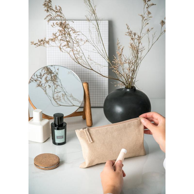 Bolsa multifunción de algodón reciclado (140 g/m²) con cremallera.225 x 120 mm