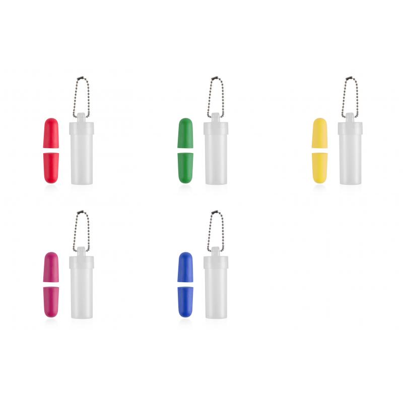 Confortables tapones para oídos en confortable material EVA de vivos colores. Presentados en estuche individual transparente con cadenita de transporte