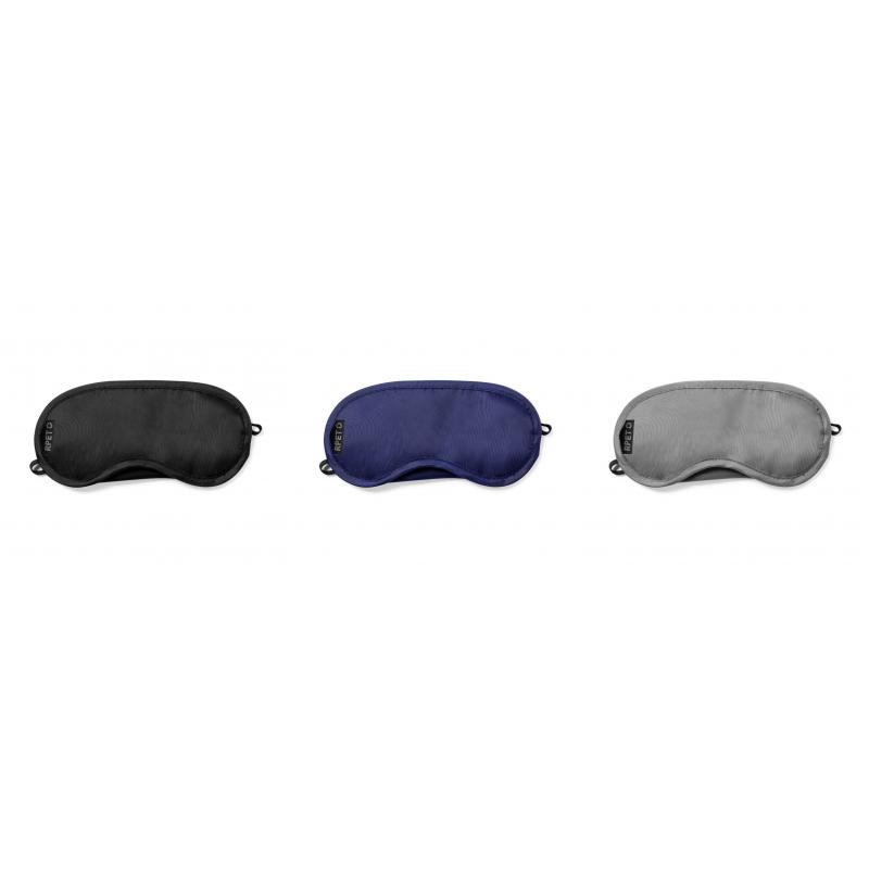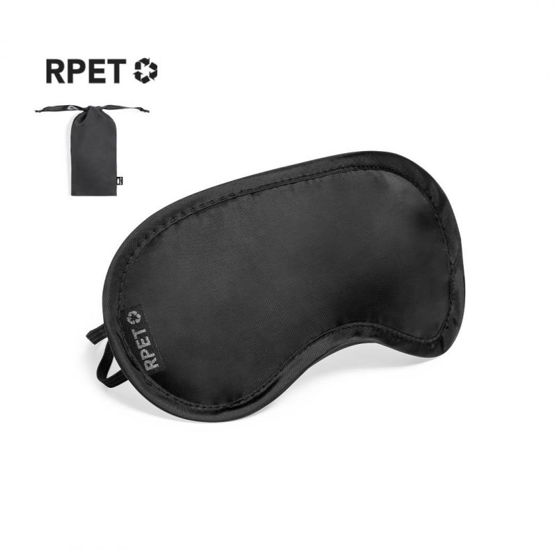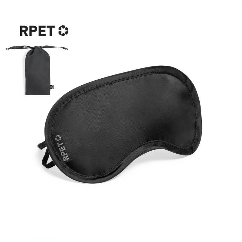 Máscara de viaje de suave y confortable ajuste, disponible en variada gama de colores. Fabricada en RPET, con doble elástico de sujeción y presentada en funda individual a juego de RPET con cierre de cordón. Distintivo RPET en máscara y funda.El material RPET se elabora a partir de plástico reciclado, para así fomentar la reutilización de residuos plásticos y ayudar a la sostenibilidad del planeta.
