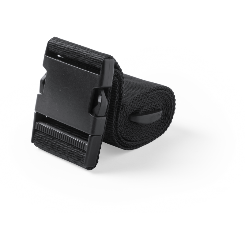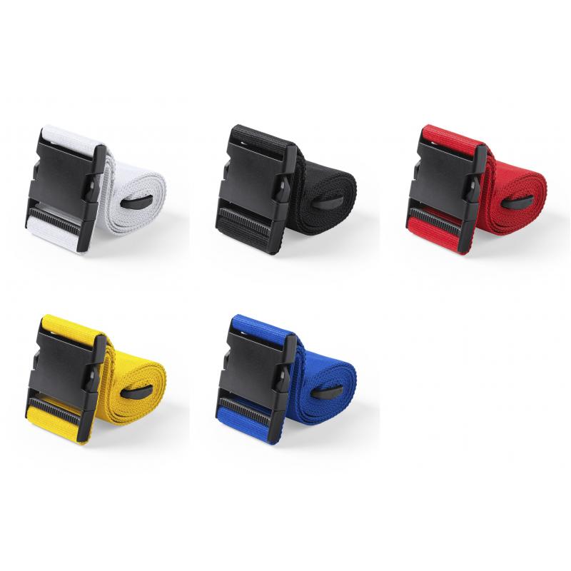 Cinta para maletas de 180cm en resistente poliéster de acabado en vivos colores. Con cierre de clic y accesorio de ajuste.